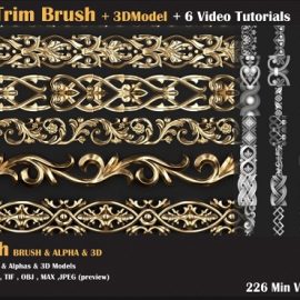 Artstation Ornament Trim Brush and 3D Models + 6 Video Tutorials VOL 02 Ornament Trim Brush and 3D Models – VOL 02 This Product include 50 Ornament Trim Brushs for Zbrush and 50 3dmodels for use any 3d software ( 3dmax,maya,blender,C4D , … ) I’ve made two previews example for...