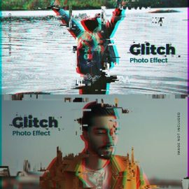 Realistic glitch photo effect template Free Download Realistic glitch photo effect template PSD