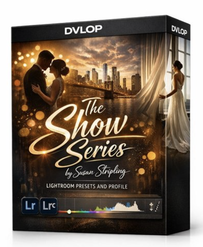 - DVLOP – The Show Series (Susan Stripling) is a preset-based editing workflow inspired by Susan’s signature wedding style—designed to give images a slightly vintage, clean-yet-gritty look with flexible adjustments for warmth/coolness when needed, plus a strong film-like black & white option. The DVLOP tutorial walks through how Susan applies the presets and modifiers in real edits for a simple, consistent, “turnkey” result.