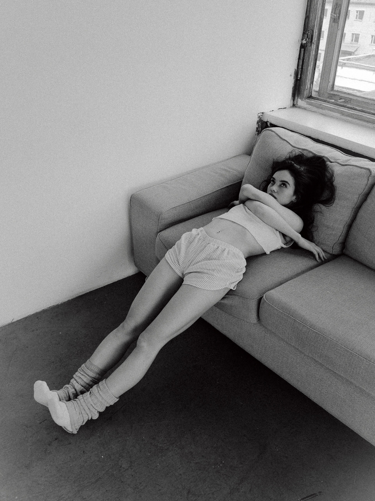 - Soft, classic black-and-white with a film-inspired mood.
