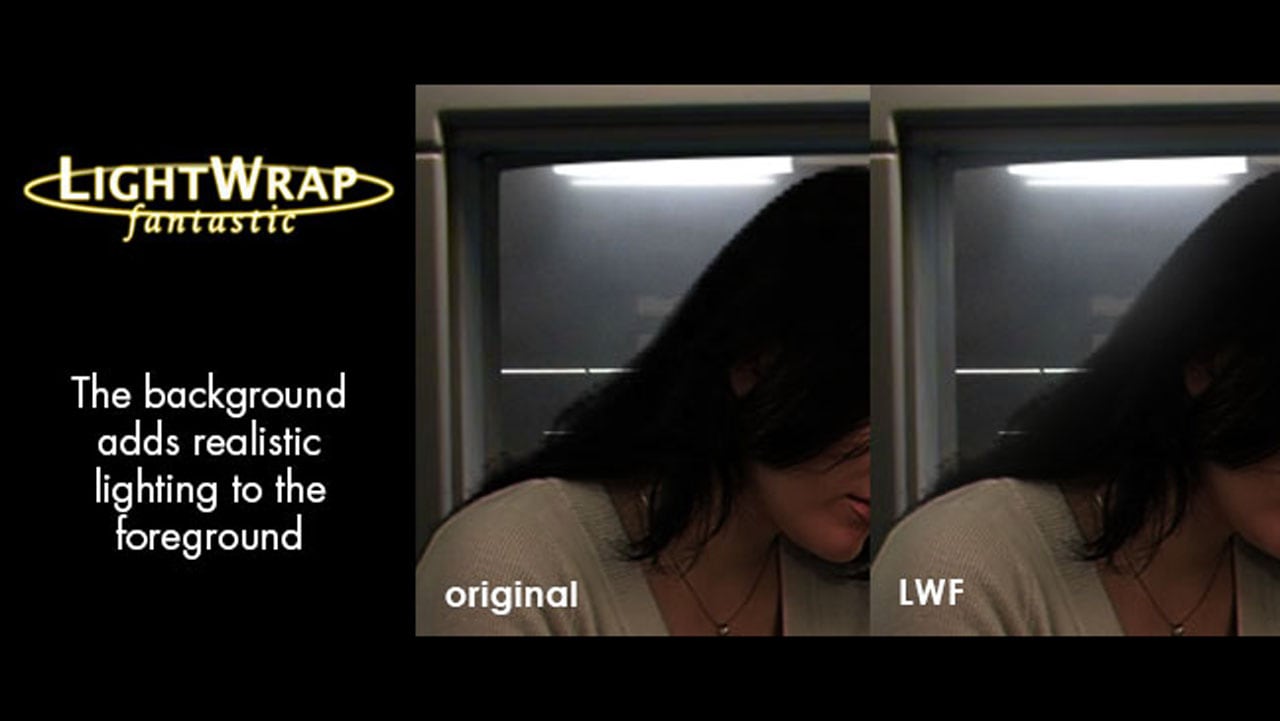LWF takes the background layer and ‘wraps’ it around the edge of the foreground, simulating backlighting. This makes for a more realistic green screen composite.