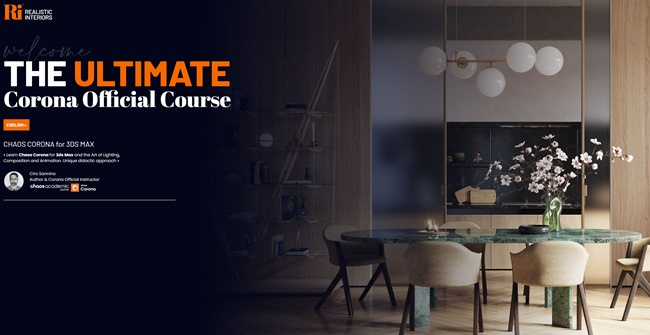 THE ULTIMATE Corona Official Course.In Realistic Interiors you can study and learn from the technical aspects of Corona Renderer to the arts involved: lighting, composition and use of color, thanks to a unique teaching approach