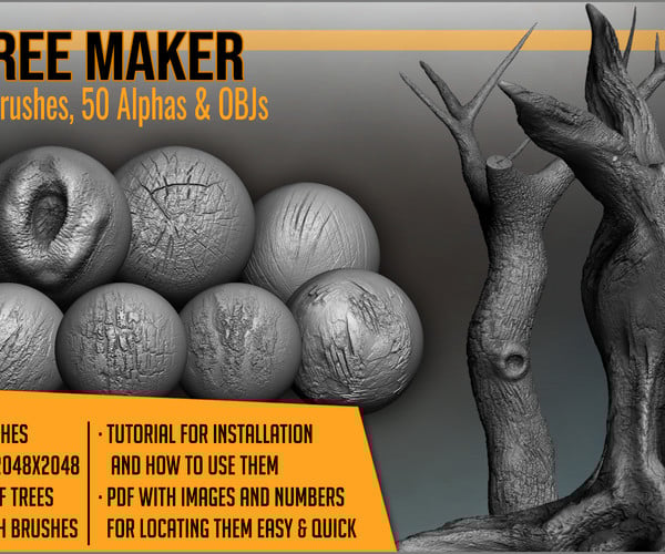 Tree Maker: 117 ZBrush Brushes, 50 Alphas and 8 Tree Basemeshes