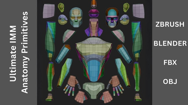 Introducing my new IMM Anatomy Primitives brush kit! This isn’t just a simple brush; it’s your new go-to for building characters. It’s a low-poly primitive set with all the essential anatomy landmarks you need—from the pectoralis and deltoids to the biceps, etc. It’s designed for both ZBrush and Blender.